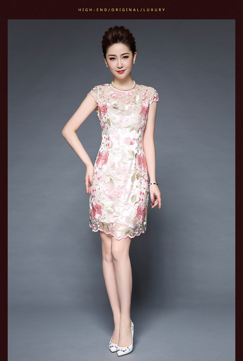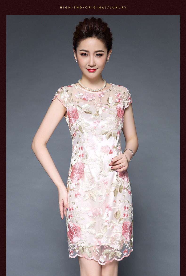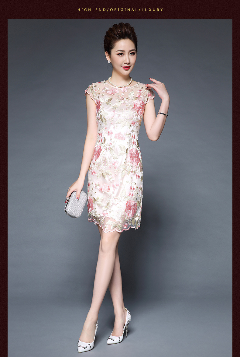 季女装大码新款重工绣花名媛气质高端修身显瘦连衣裙女批发 图色短袖 M