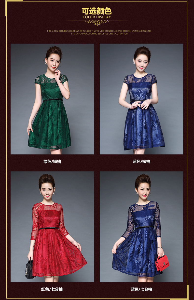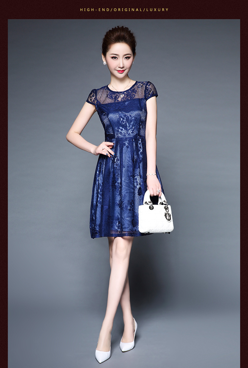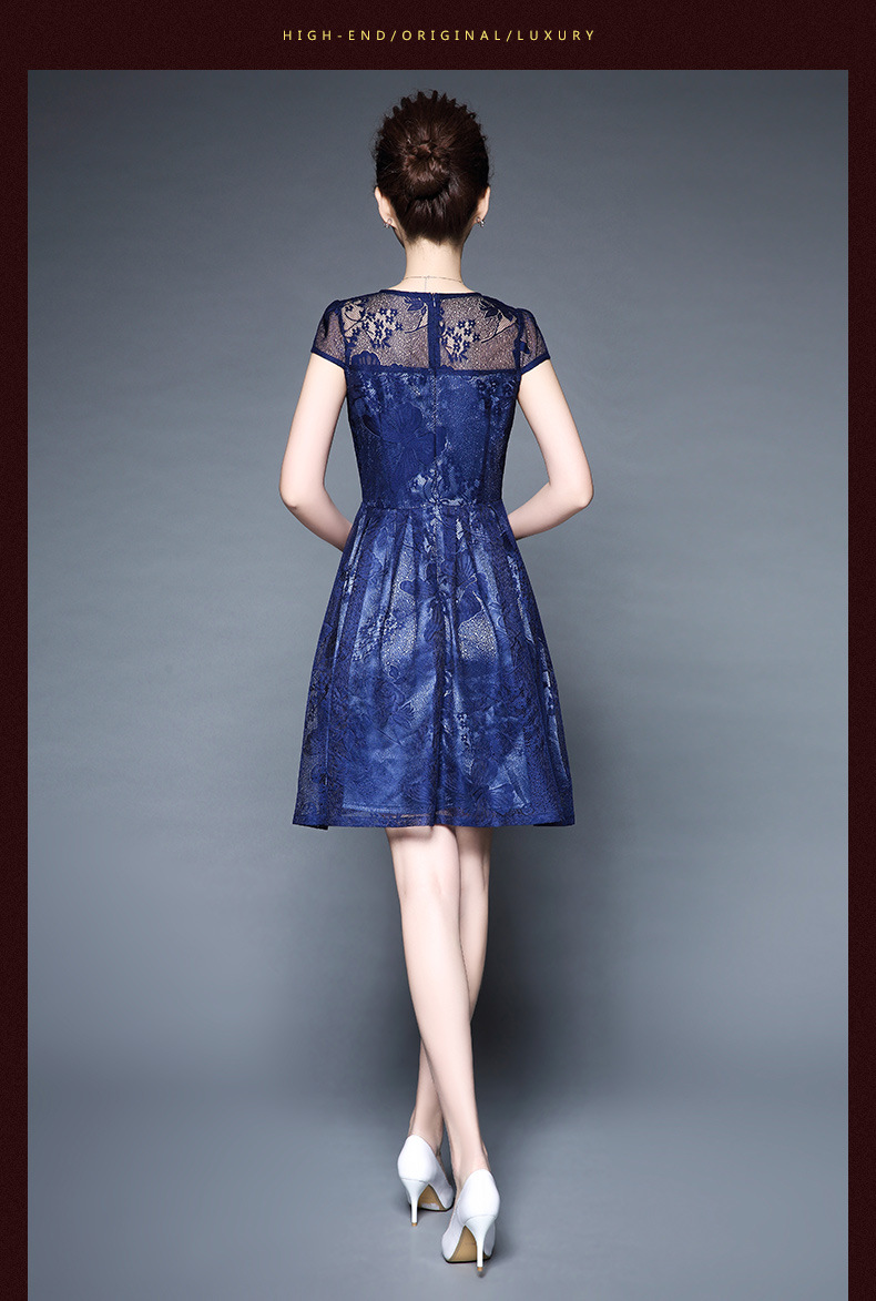 欧洲站装新款大码女装淘宝代发蕾丝性感透视短袖连衣裙批发