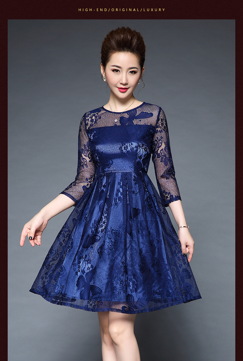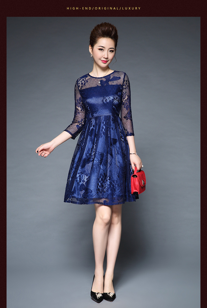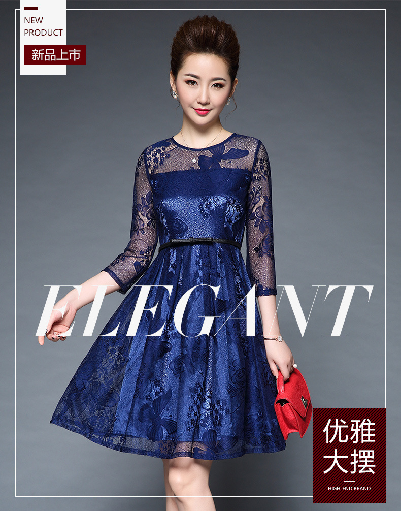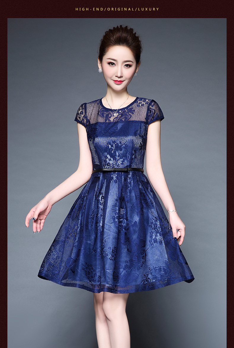 欧洲站装新款大码女装淘宝代发蕾丝性感透视短袖连衣裙批发