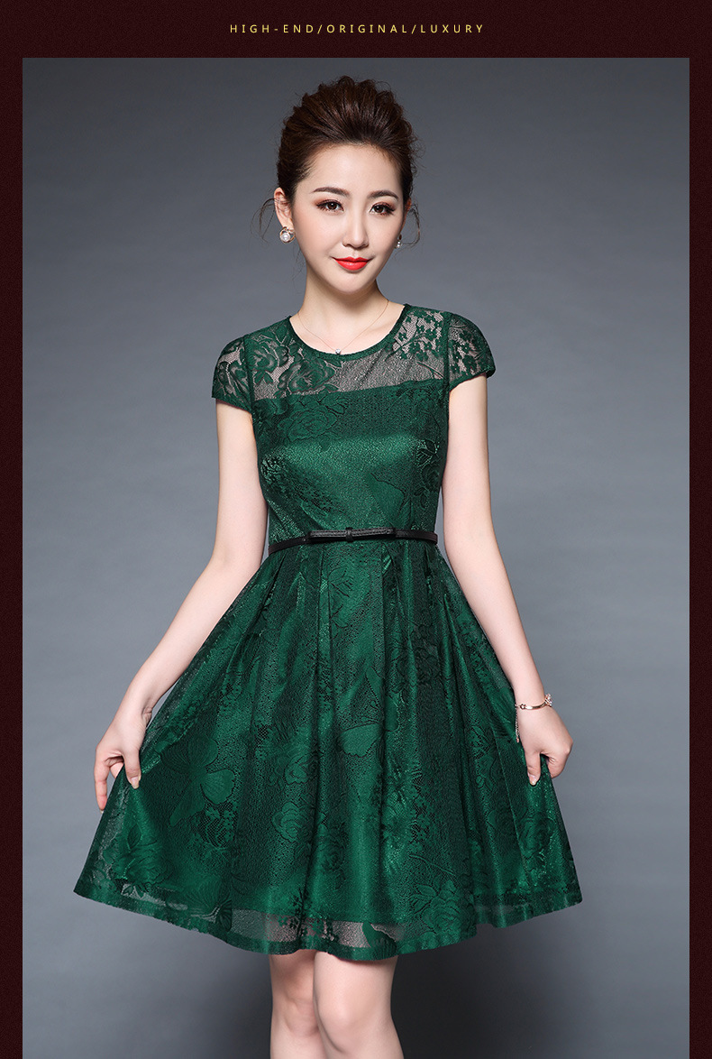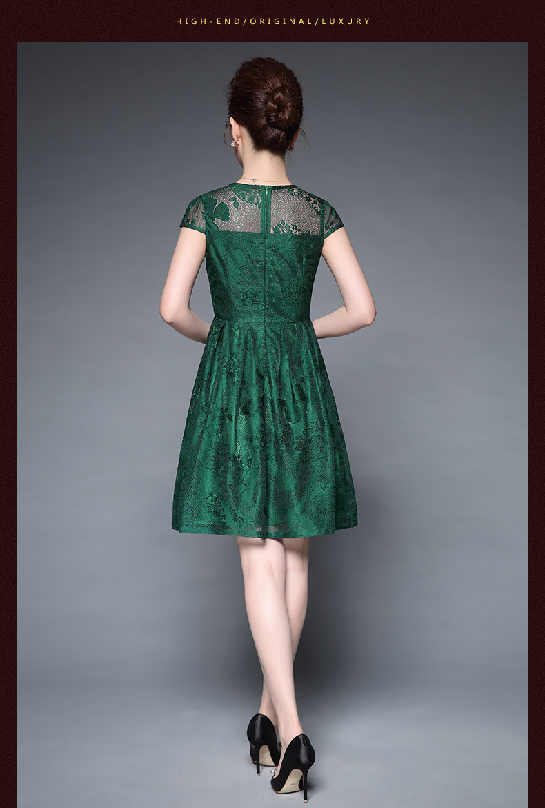欧洲站装新款大码女装淘宝代发蕾丝性感透视短袖连衣裙批发 绿色短袖 M