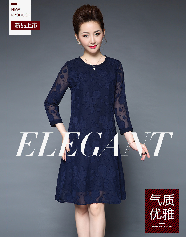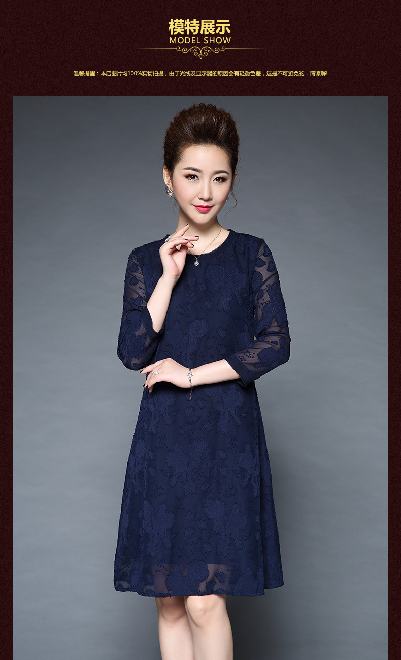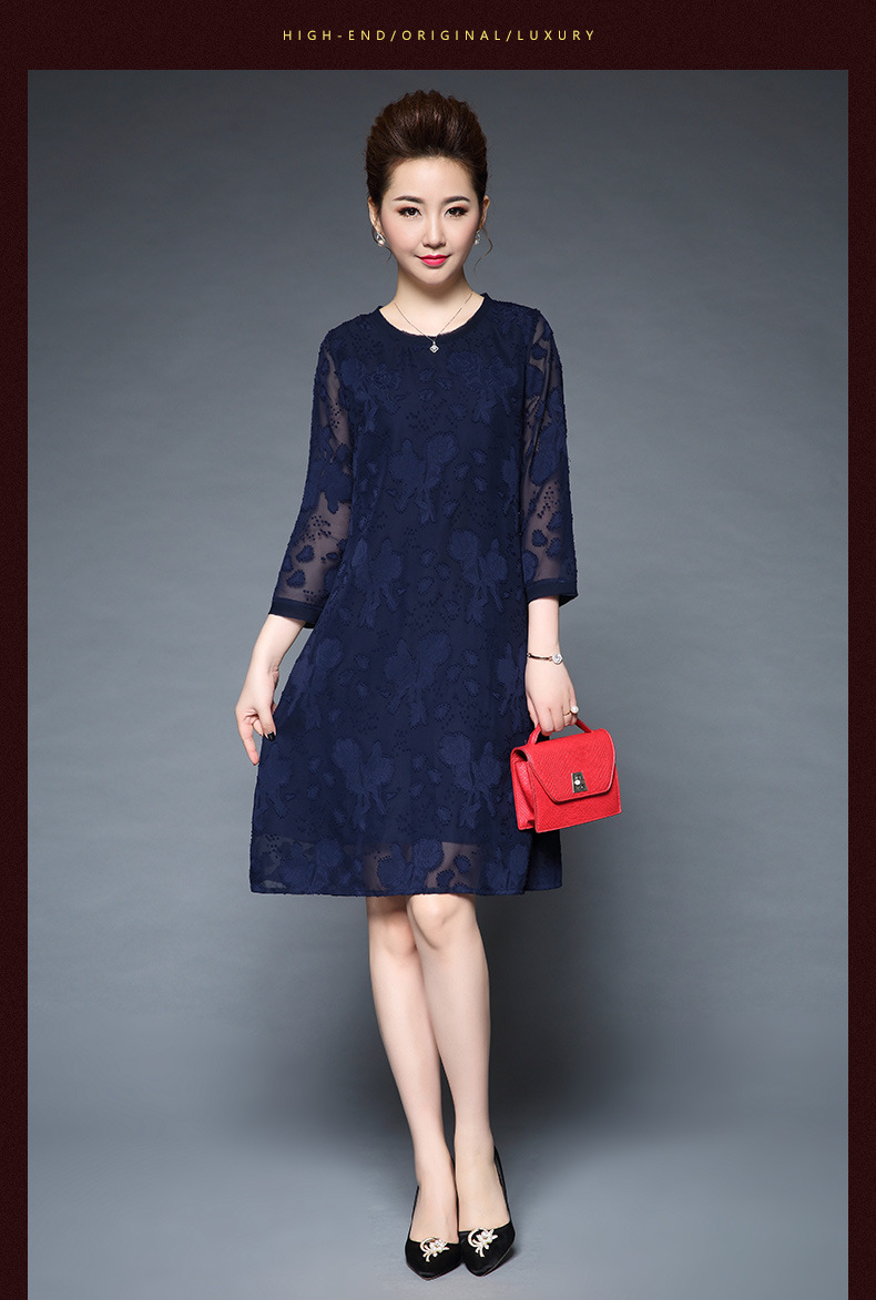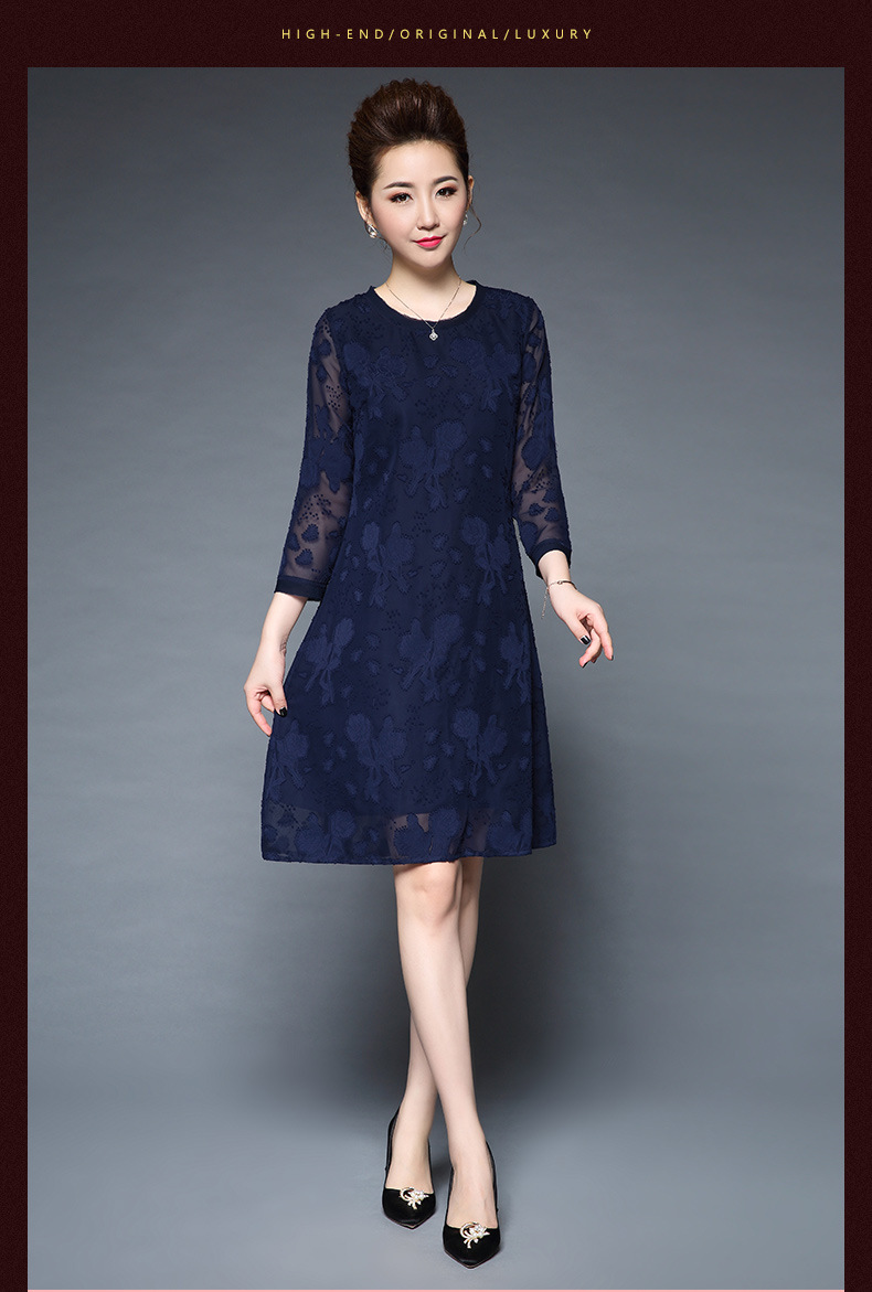 装秋新品气质大码宽松妈妈装雪纺烧花七分袖连衣裙 批发