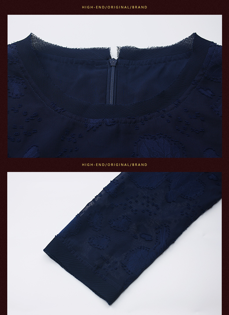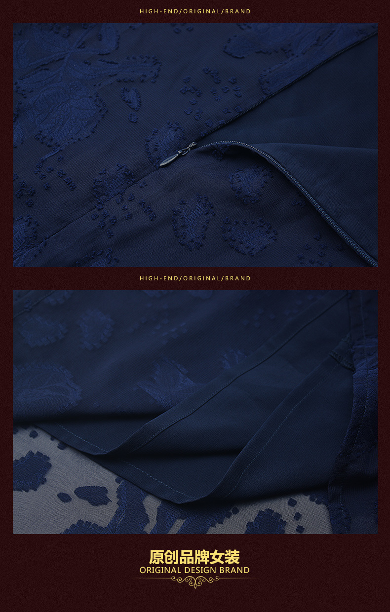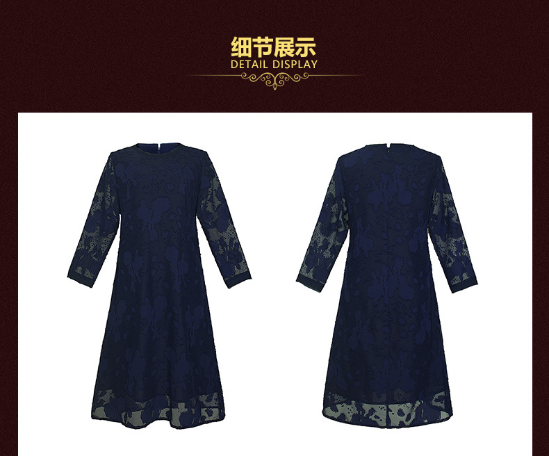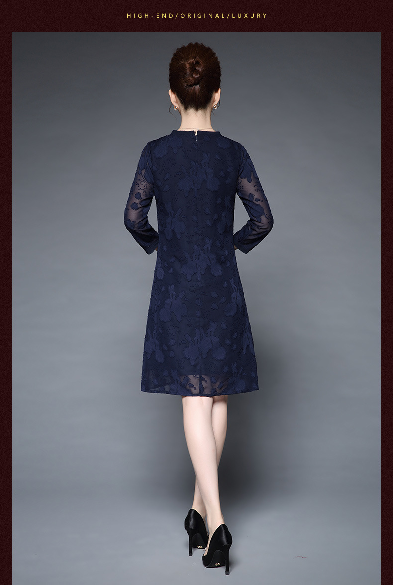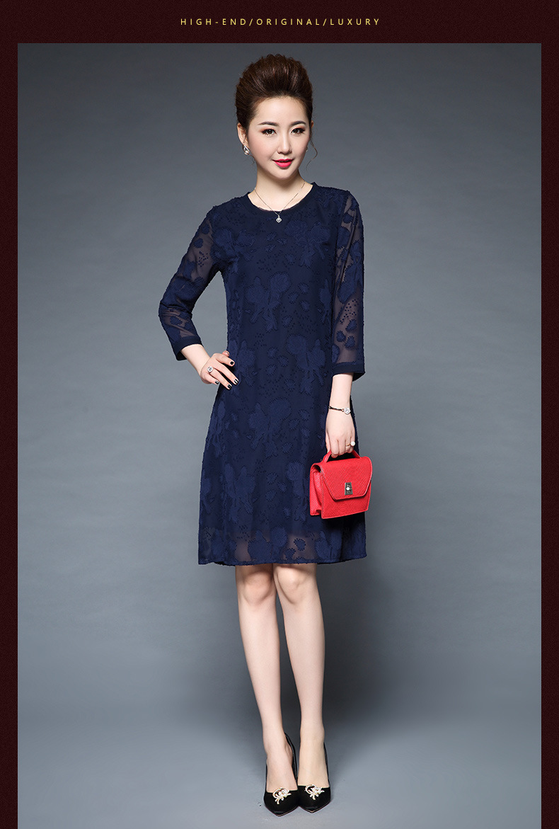 装秋新品气质大码宽松妈妈装雪纺烧花七分袖连衣裙 批发